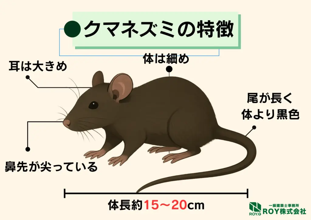 この中でも特に天井裏に巣を作りやすいのが「クマネズミ」です。