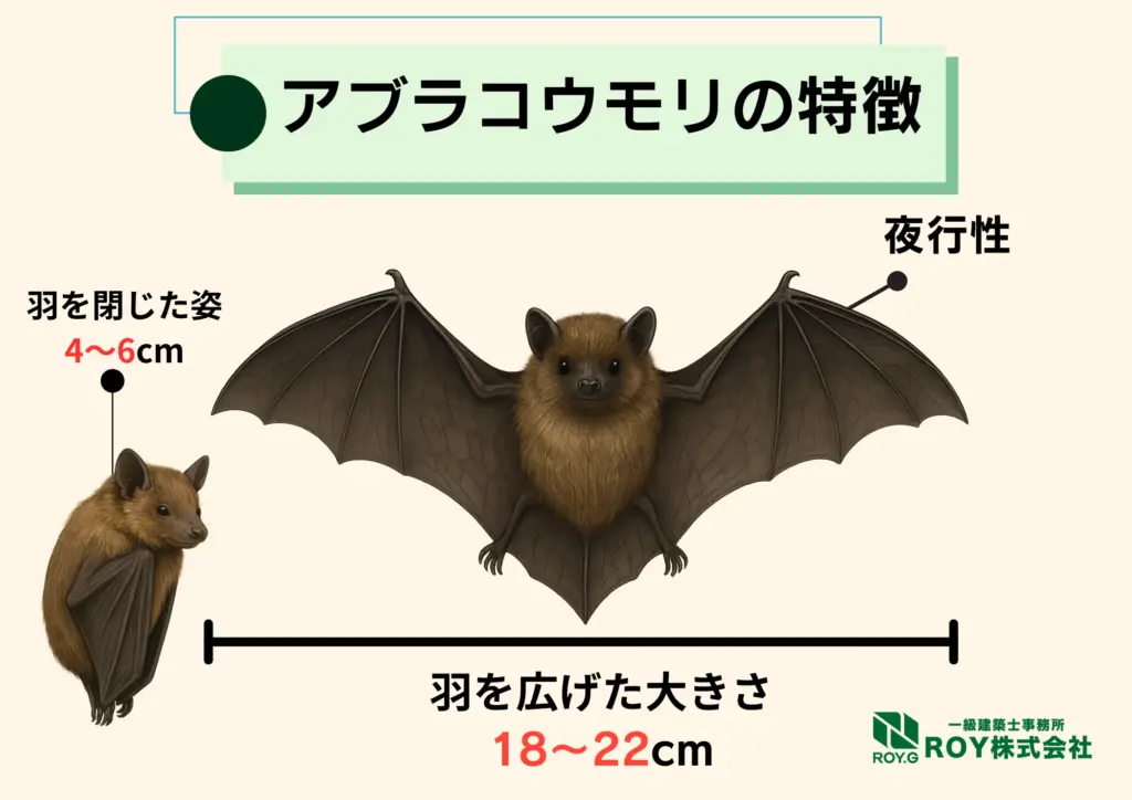 昼間は静かにぶら下がって休み、夜になると活動を始めるため、夜中の物音や鳴き声で気づくケースが多いです。