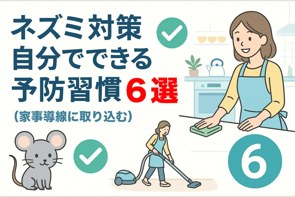 家庭のネズミ問題は、感染症・衛生・建物耐久の三点から「急いで、正しく、再発させない」ことが重要です。湿式清掃→衛生管理→侵入経路封鎖の順で、建物全体の視点から対処しましょう。