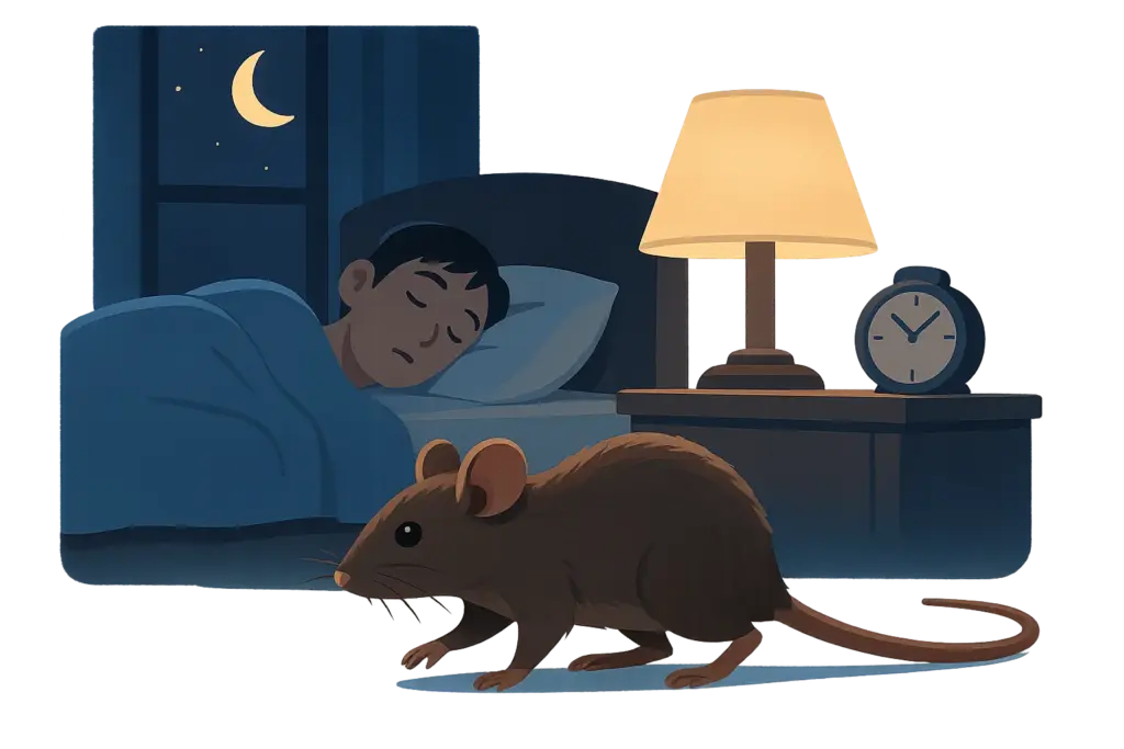 人が寝静まった深夜から明け方にかけて活発に活動します。天井裏を走り回る音、配管をかじる音などが聞こえたら要注意です。