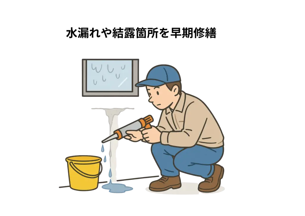 水漏れや結露箇所を早期修繕 ― ネズミは水分も必要とします。水漏れや結露がある場所は、ネズミを引き寄せる要因になります。
