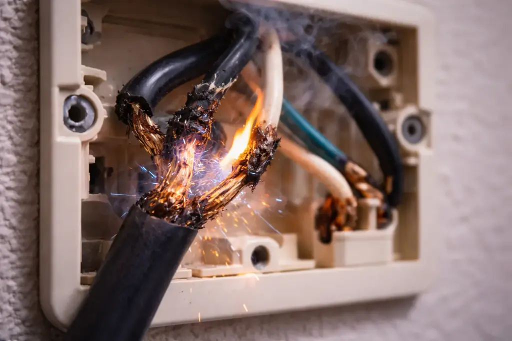 絶縁体が劣化してショートや漏電が起きる