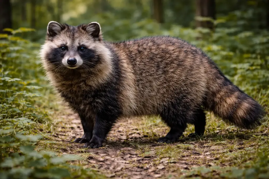 タヌキは、イヌ科に属する日本固有の野生動物です。正式にはホンドタヌキと呼ばれ、本州・四国・九州に広く分布しています。北海道には亜種のエゾタヌキが生息しており、日本全国で見られる身近な野生動物です。