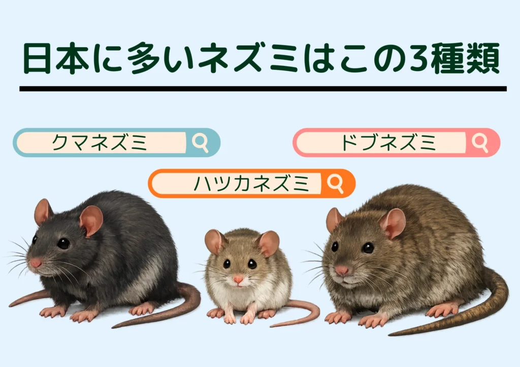 日本の住宅で発生するネズミ被害の多くは、特定の3種類によるものです。