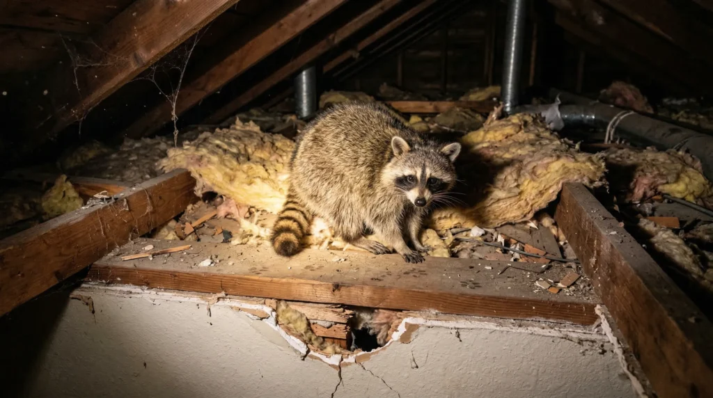 春はアライグマの出産シーズンで、メスは安全な場所を探して屋根裏や床下に侵入することがあります。