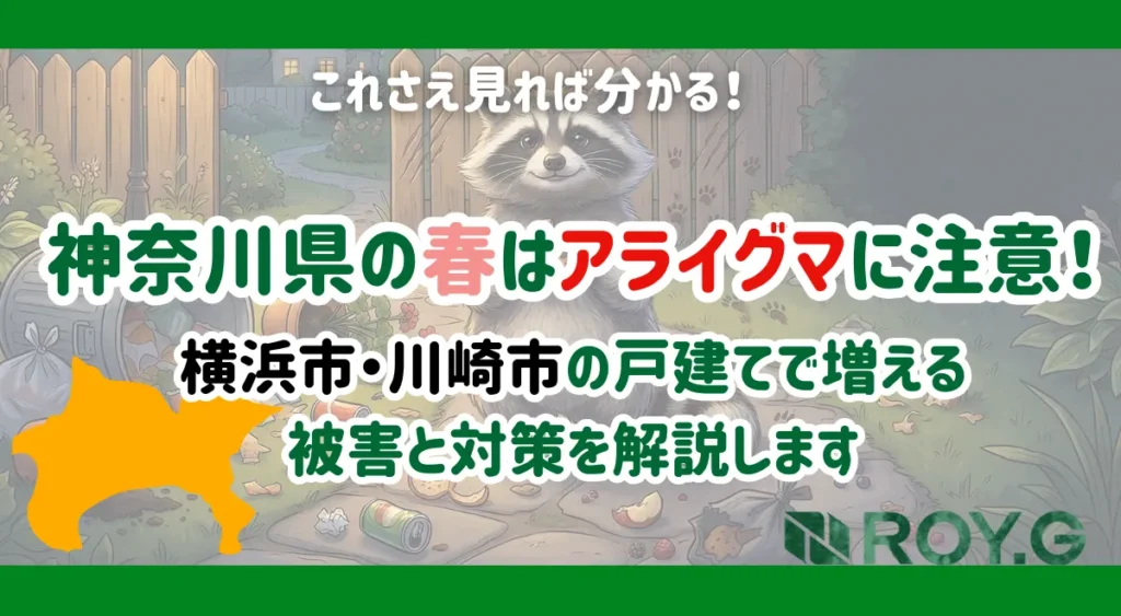 神奈川県では近年、住宅街でもアライグマの生息が広がっており、特に春は繁殖シーズンのため被害が増えやすい時期です。