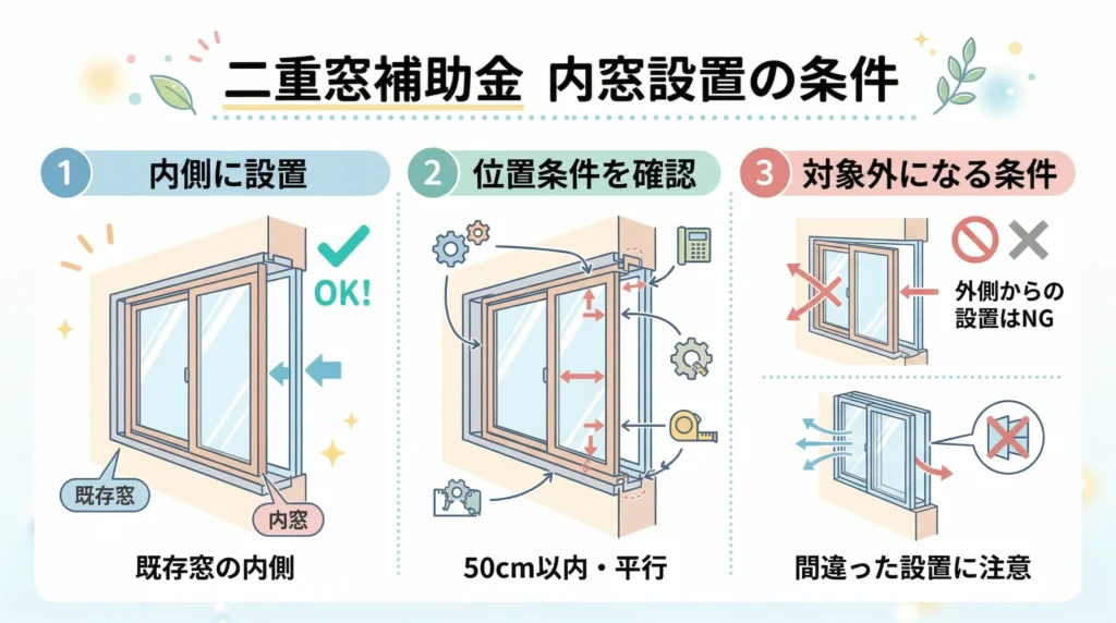 二重窓なら何でも補助対象になるわけではなく、制度上の条件を満たす必要があります。